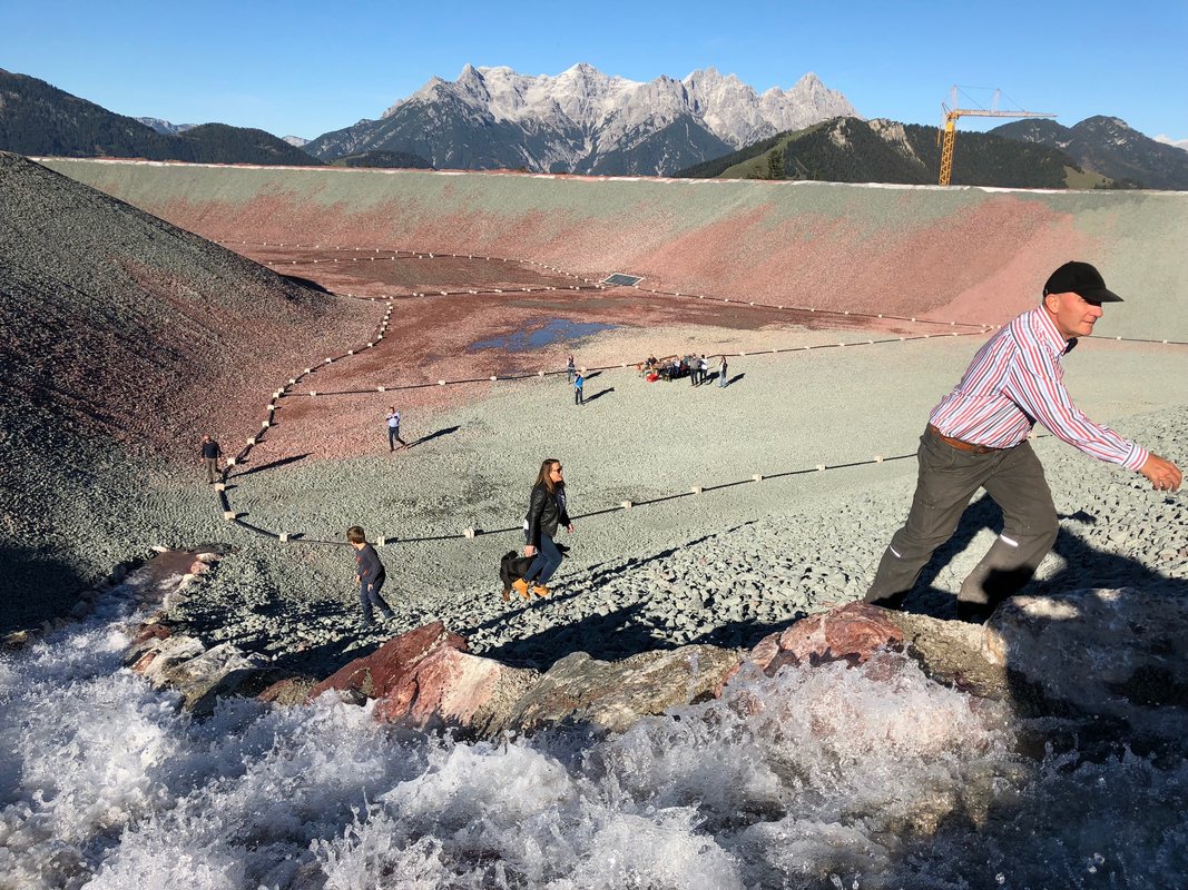 Knapp 5 Monate nach dem Spatenstich für die Bauarbeiten am neuen Speicherteich Streuböden in Fieberbrunn hieß es am 04. Oktober um 16:00 Uhr „Wasser marsch“! Planmäßig konnte mit der Befüllung des 150.000 m³ fassenden Wasserreservoirs begonnen werden, welches eine gleichzeitige Beschneiung des gesamten Skigebiets ermöglichen und den Skibetrieb zu Weihnachten sichern soll. Der Aufsichtsrat der Bergbahnen Fieberbrunn – welcher seine Sitzung kurzerhand inmitten des Speicherteiches abhielt – zeigt sich sehr zufrieden angesichts der termingerechten Befüllung des Teiches.