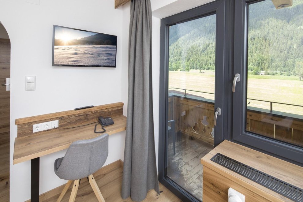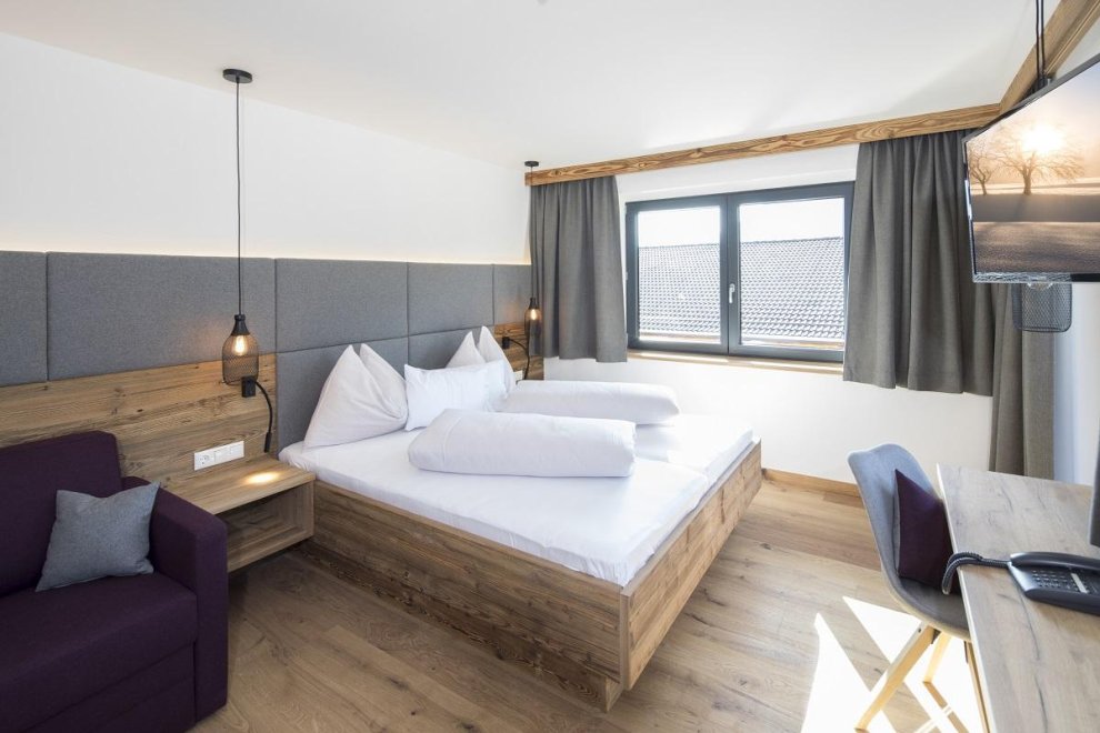 35 komfortable Zimmer, aufgeteilt in Doppelzimmer Deluxe, Alpin, Single Alpin und Suiten, alle mit Bad oder Dusche, Flat-TV, Telefon, und Balkon. Lobby, Sonnenterrasse mit 15m Naturpool, gratis W-Lan und eigener Parkplatz sowie ein gemütliches Restaurant und eine Bar erwarten Sie.