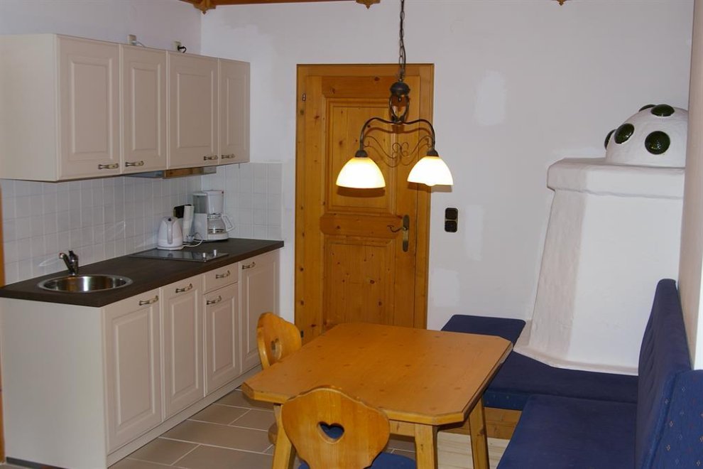 Schöne Ferienwohnung mit 2 Schlafzimmern, jeweils mit Doppelbett (Boxspringbett). Wohnküche mit neuer Küche und Essecke, Geschirrspüler. Badezimmer mit Badewanne und 2 Waschbecken, WC separat. LED-TV (Kabel), WLAN, Kachelofen, Balkon, Ausstattung mit Tiroler Möbeln, 45 m² Wohnfläche.