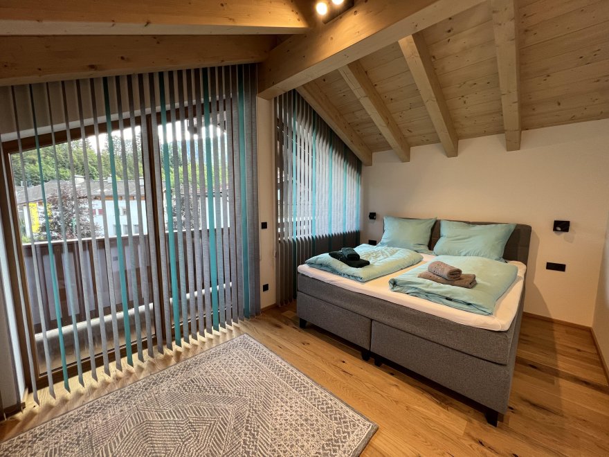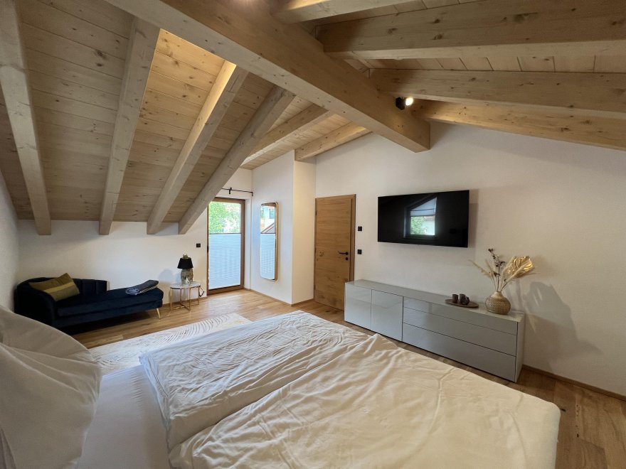 Die neu errichtet Unterkunft wurde 2024 fertig eingerichtet, verfügt über ein gehobenes Interieur und erstreckt sich über zwei Stockwerke. Eingerichtet mit einer großzügigen und vollausgestatteten Wohnküche und offenem Wohnbereich mit Schlafsofa und TV, bildet das 1. Obergeschoss das Herz der Unterkunft. Zudem befinden sich dort auch das Bad, Abstellraum sowie abgetrenntes WC. Die mit einer Loungegarnitur ausgestatte Terrasse ist direkt über den Wohnbereich begehbar und bietet eine Platz für romantische Sonnenuntergänge. Die beiden Schlafzimmer befinden sich im Dachgeschoss und haben jeweils einen eigenen Balkon sowie ein gemeinsames WC. Für das Abstellen der Autos stehen direkt an der Unterkunft zwei Autoabstellplätze mit der Aufschrift „Dependance“ zur Verfügung.