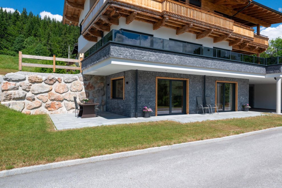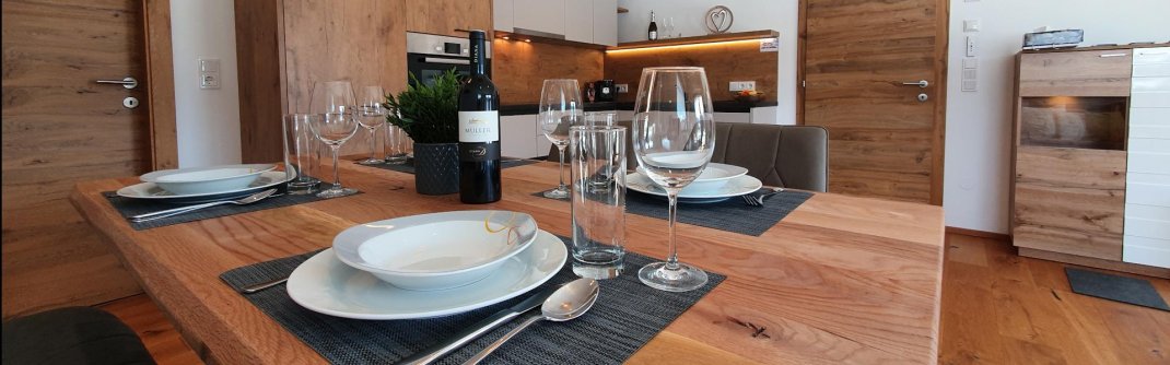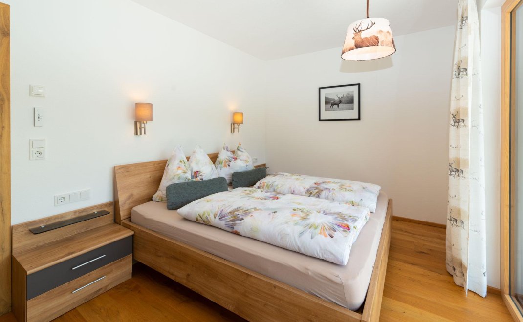 Die Ferienwohnung (mit einer Gesamtwohnfläche von ca. 70 m²) für 2 bis 4 Personen besteht aus einer großzügigen Wohnküche mit einer ausziehbaren Couch, Fernseher, Essecke und einer voll ausgestatteten Küche. Des weiteren aus zwei Schlafzimmern, einem Bad, separates WC, Terrasse und einem Skiraum. Weiters steht ein überdachter Autoabstellplatz direkt neben der Eingangstür zur Verfügung.