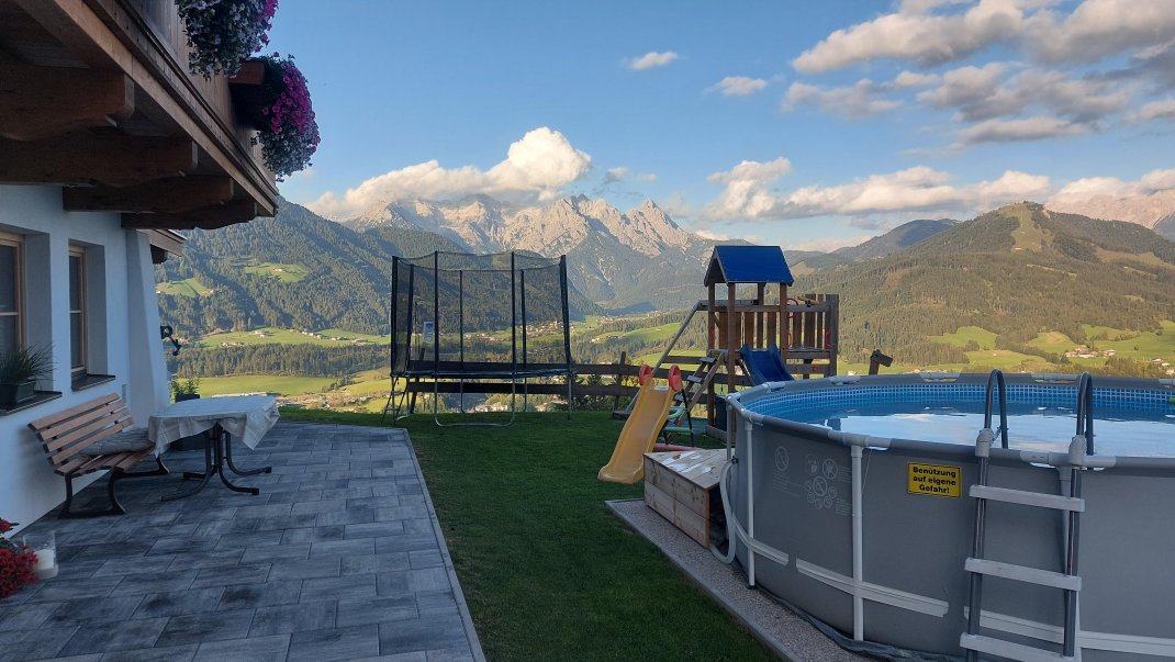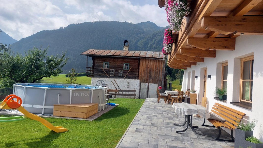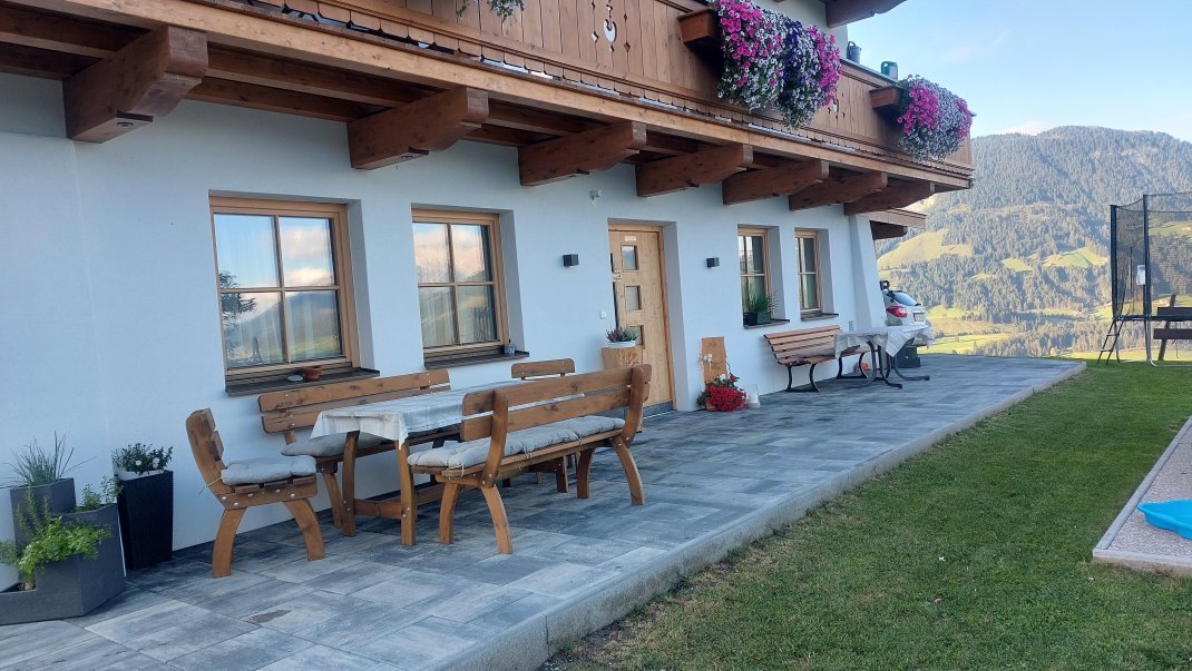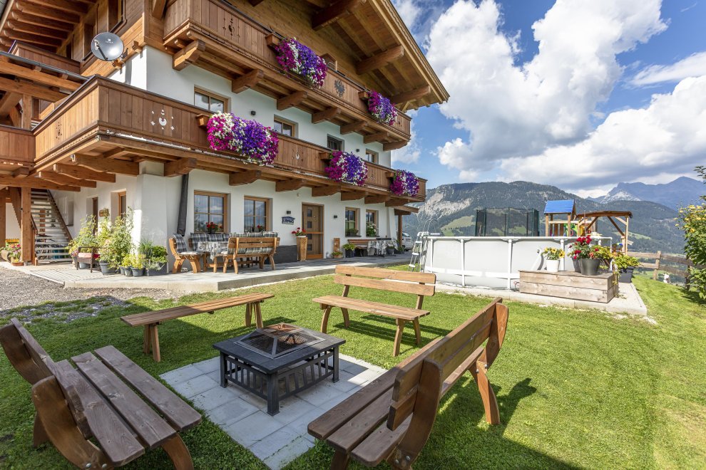 Unser neu errichtetes Bauernhaus liegt in Mitten der Kitzbüheler Alpen, auf ca. 1.000m Seehöhe und bietet einen wunderschönen Blick über das Pillerseetal. Auf unserem Hof gibt es neben den milchbringenden Kühen auch Katzen, Hasen, Meerschweinchen, Zwergziegen, Schafe, Ponys, Hühner, Wachteln und einen Hund. Zudem bieten wir unseren Jüngsten einen Spielplatz, ein Trampolin und einen Tischtennistisch zum Austoben an.
