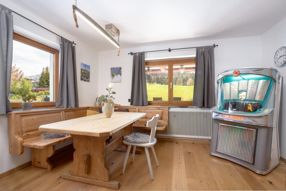 Im Herbst 2018 haben Wolfgang und Rainer Möllinger beschlossen, dieses wunderschöne, traditionelle Tiroler Haus in Hochfilzen zu kaufen und für die Zukunft, als Appartmenthaus für Kleingruppen bis zu 12 Personen zu vermieten. Der ideale Standort mit Skibushalte vor dem Haus, und dem Bahnhof in nur 5 Gehminuten Entfernung, ermöglicht unseren Gästen die hervorragende touristische Infrastruktur zu allen Jahreszeiten zu nutzen. Einerseits bietet sich Fieberbrunn andererseits Leogang als Einstieg in den "Skizirkus Saalbach Hinterglemm" an. Auch das günstige Ski- und Ausflugsgebiet Buchensteinwand, mit seinem Ausflugsziel Jakobshorn, liegt nur 5 Fahrminuten von der Unterkunft. Mit dem Regionalzug ist man in nur 30 Minuten in Kitzbühel, direkt an der Hahnenkammbahn. Wer das Nachtleben in Kitzbühel geniessen will, der kann mit dem letzten Zug, noch weit nach Mitternacht, ins ruhige Hochfilzen zurückkehren.