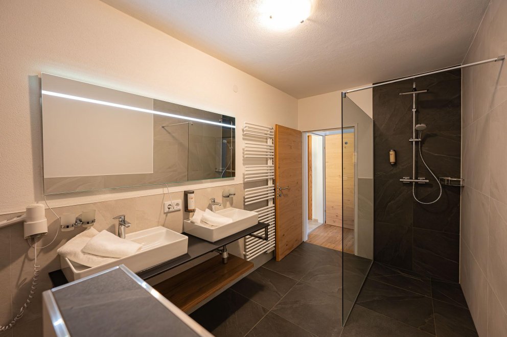 Unser Familienzimmer im Parterre mit geräumigen Badezimmer wurde frisch renoviert und verfügt über ein Elternschlafzimmer (ausgestattet mit Sitzmöglichkeit, Kabel-TV, gratis W-lan und südseitig gelegenen Terrassenzugang) sowie ein separates Schlafzimmer mit bequemer Doppelausziehcouch - ideal für Familien mit Kindern!