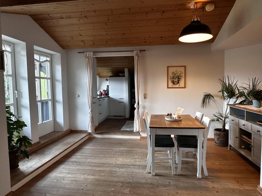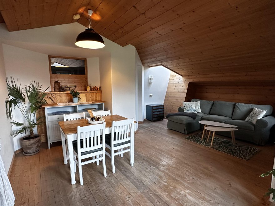 Das 75m² große Appartement befindet im Dachgeschoss des Bauernhauses. Das Appartement ist neuwertig ausgestattet und verfügt über einen großzügigen Wohn-Essbereich mit moderner Küche, 2 separaten Schlafzimmern und einem Bad mit Wanne/WC, W-Lan, Kabel TV und einem Balkon.