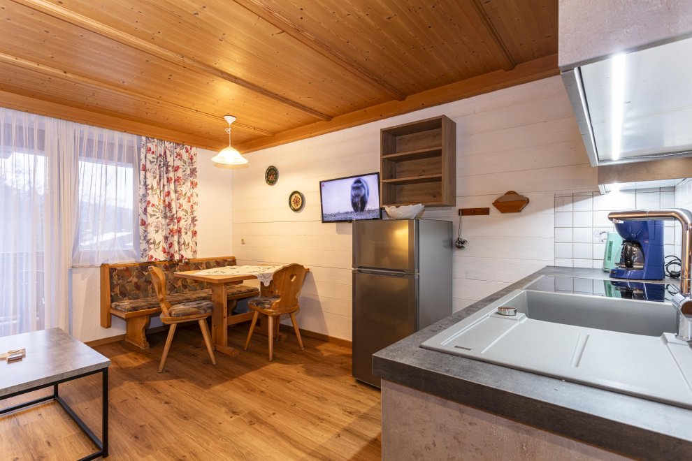 Neumöbilierte Wohnung für 2-4 Personen mit Doppelzimmer, Wohnschlafzimmer mit Schlafmöglichkeit für 2 Personen, Kochnische, DU/WC, Balkon, TV, Radio, Föhn und Tresor. Gesamt ca. 43 m².