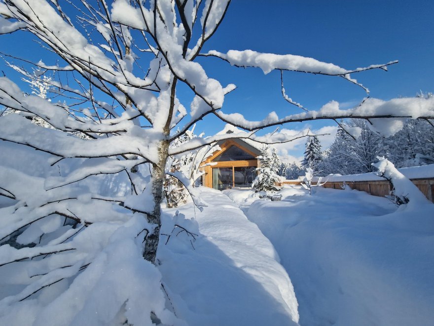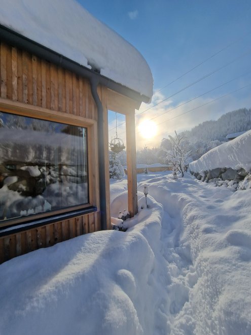 Discover the charming and cozy "Auszeit" Tiny House, perfectly nestled in the beautiful Tyrolean mountains. This special and extraordinary eco house, built from 100% wood from our own forest, combines traditional Tyrolean furniture with a modern Scandinavian design. Experience pure relaxation and comfort in this lovingly built house. Whether in winter or summer, take advantage of the special location between bathing lake and ski lift to be active in sports or escape the stress of everyday life and enjoy the peace and beauty of the mountains.