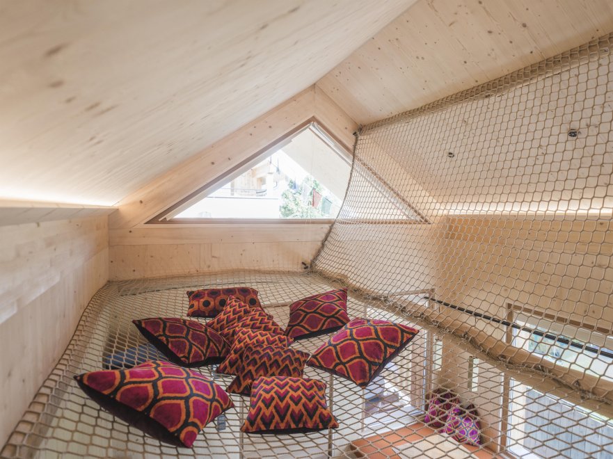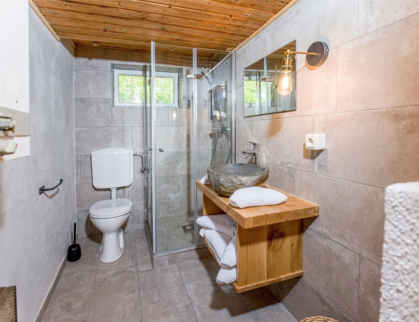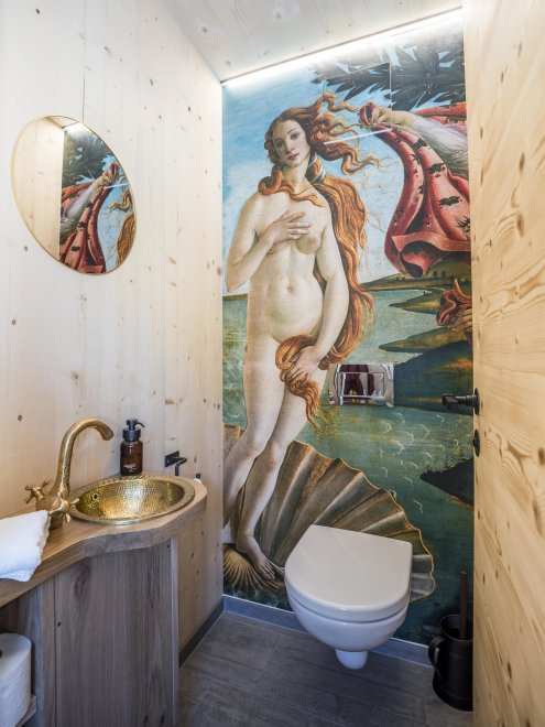 The Chalet BERG.HEIMAT is our special delicacy with small luxury moments. Both in the light-filled living area with fully equipped kitchen, as well as in the bedrooms on the first floor, large windows ensure perfect vision. The Chalet BERG.HEIMAT has two private terraces with their own Sauna Cube. From the sauna it goes directly into the biotope or volé in the heated bath barrel. A turntable provides mood. Highlight NEW: Orangerie - Panorama Glasshouse on the roof terrace