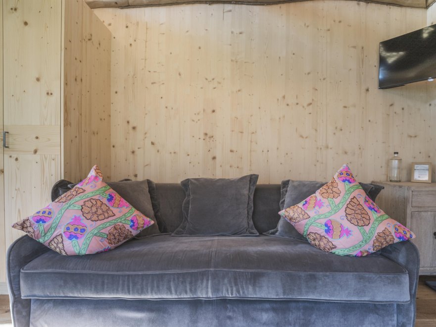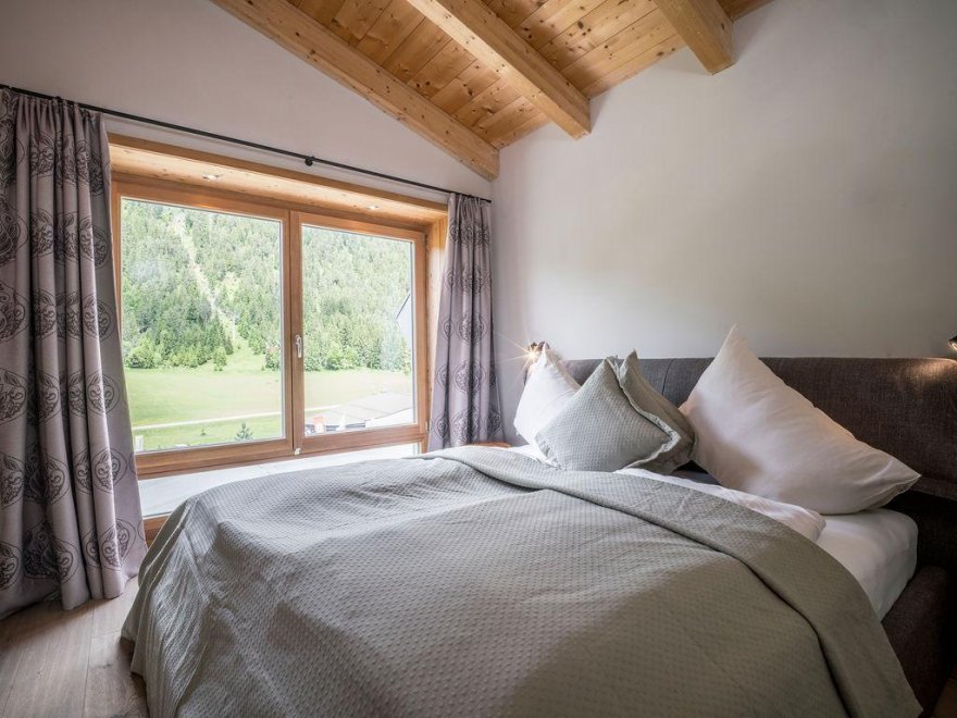 Each chalet spans two floors with two bedrooms, a stylish bathroom with a rain shower, a private WC, and a bright living room with an open, fully equipped kitchen, as well as its own outdoor sauna. High windows and cozy window seats provide a breathtaking view. From the living room, you can step out onto one of two private sun terraces. New from summer 2025 in the Premium Chalet Berg.Pioneers: whirlpool on the private rooftop terrace.