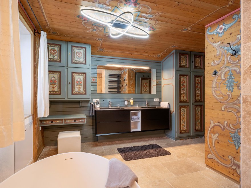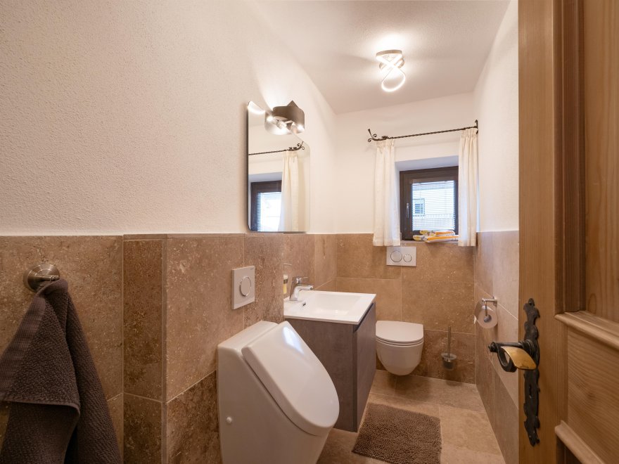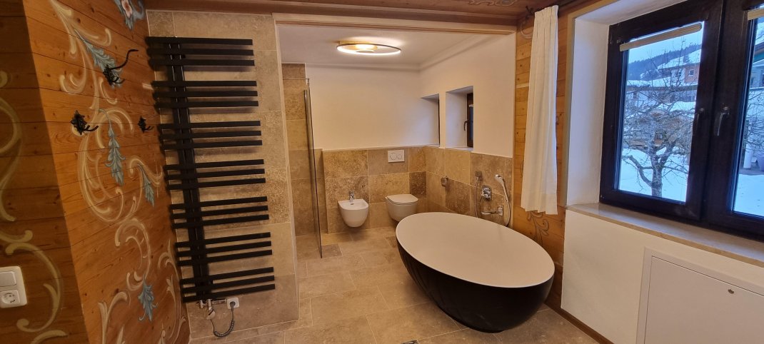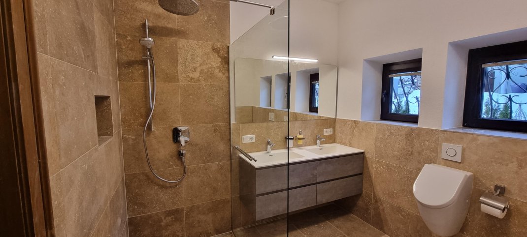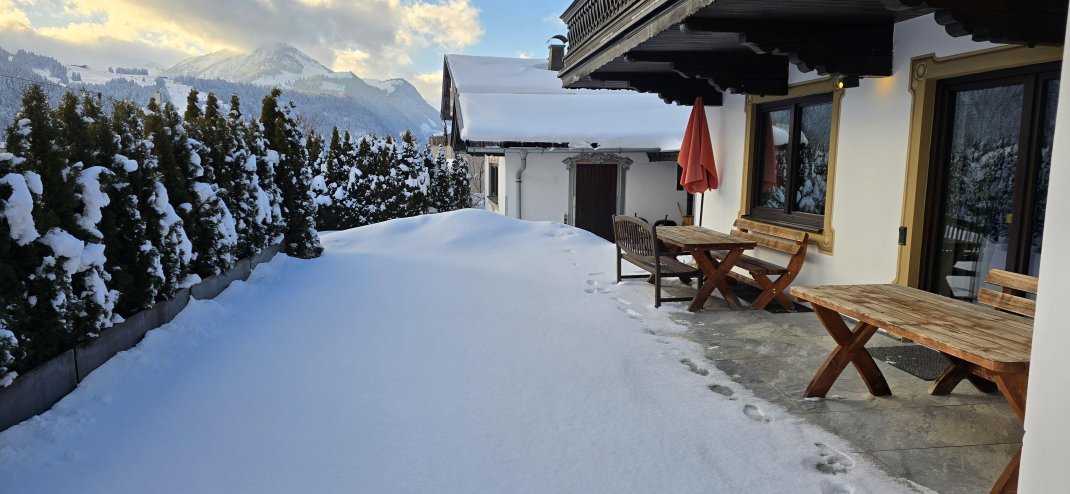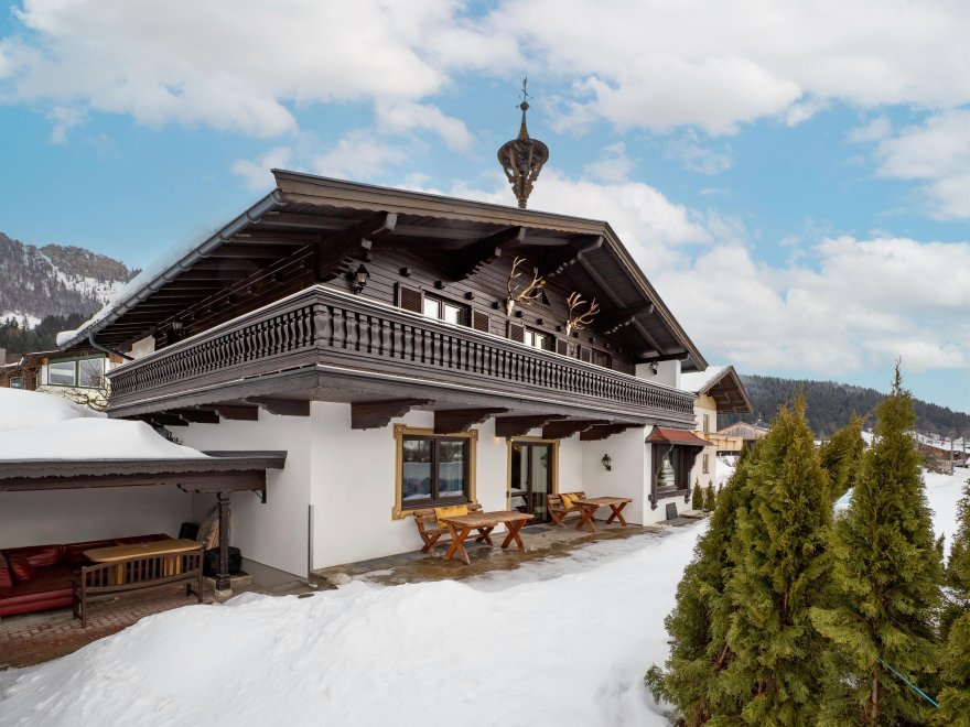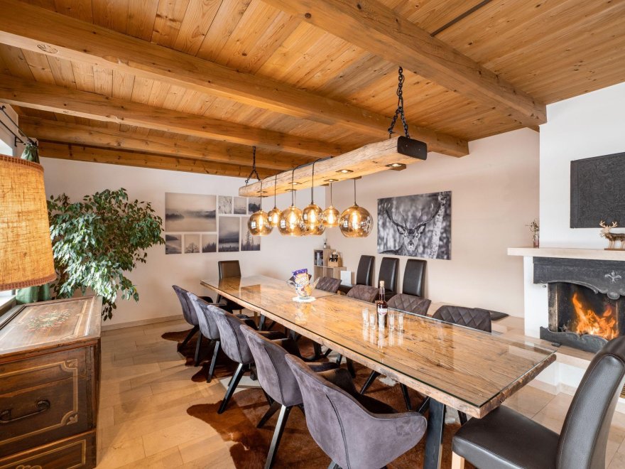 This beautiful spacious, detached villa with garden, large terrace, covered outdoor seating with barbecue facilities, and garage also offers plenty of space for larger groups with over 200m2 of living area. Opposite there is a train station and bus stop for the ski and regional bus. The mountain railway with the ski area Fieberbrunn-Leogang-Saalbach-Hinterglemm is about 3km away. The standard occupancy of the villa is 10 people - with extra beds, more people would also be possible.
