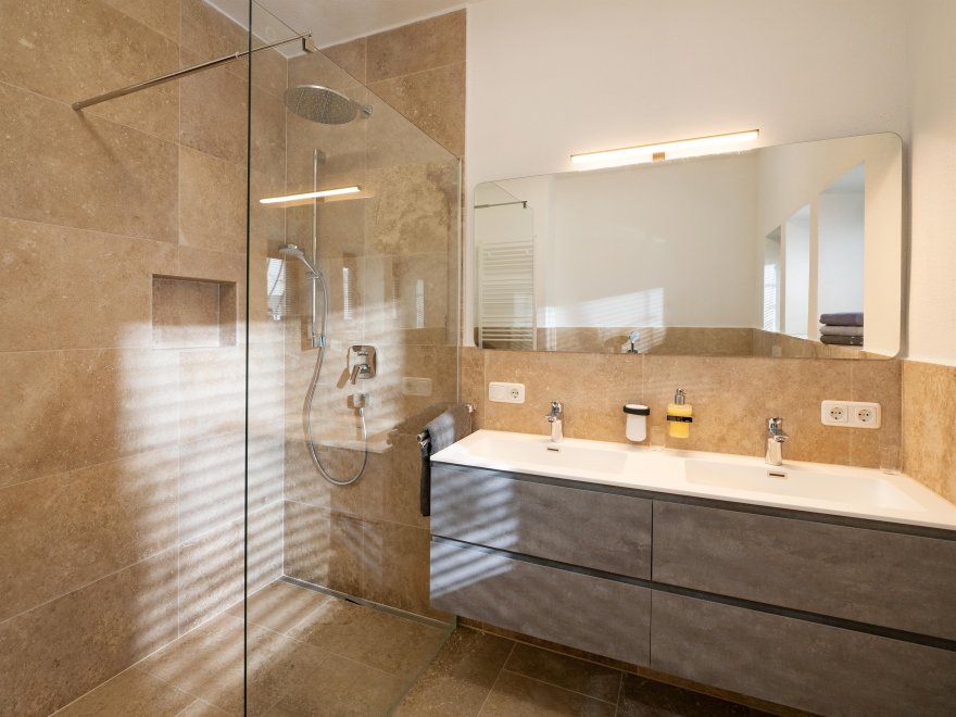 Holiday house for 2 - 10 persons with 5 bedrooms, 1 four-bed room, 3 Double room, 1 room with bunk beds, kitchen, living room, 2 bathrooms, 3 toilets, bidet, 2 double washbasin, hairdryer and make-up mirror.