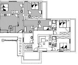 Our house is located near the centre, the bus stop and a bicycle and foot path and in winter the cross country course. The apartment offers 3 separate bedrooms, a bath and a extra toilette, and a big, freshly renovated kitchen. In the summer there is an big garden available with games for outside as well as inside.