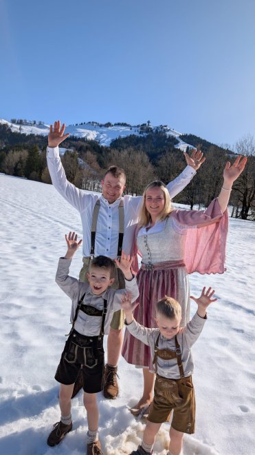 We, Sebastian and Denise, together with our children Mattheo and Simon, have been running our organic farm since 2022 with great passion. Located in the beautiful Pillersee Valley and surrounded by impressive mountain scenery, we offer a cozy holiday apartment where you can relax and feel at home.