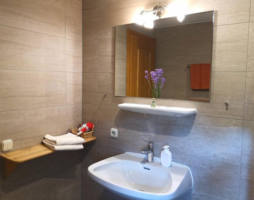Cosy furnished apartment (private-house app. 200 m from the farmhouse), 2 bedrooms (2 doublebed-rooms , 1 x sofa single bed), kitchen with dining-table, 1 shower, 1 toilet, terrace with mountain view, Sat-TV, 84 m².